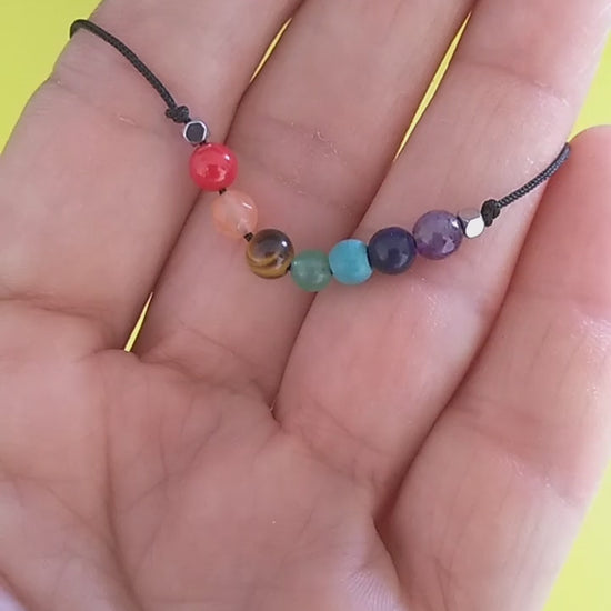 Pulsera 7 Chakras artesanal: Equilibra tu energía con esta linda pulsera minimalista. Hecho a mano con piedras naturales que resuenan con cada uno de tus 7 chakras.